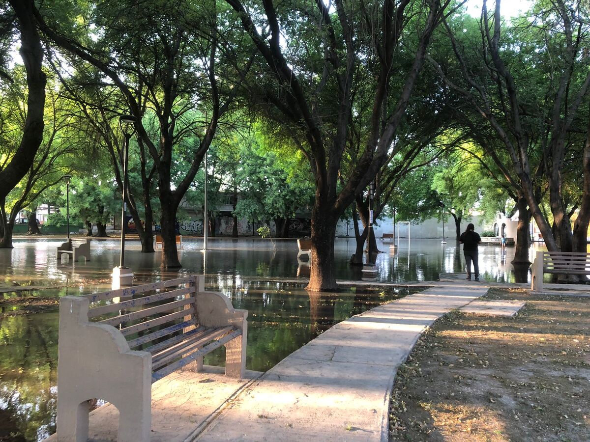 Aunque el parque es extenso, en el cruce de las calles del Jardín y Ruiseñor gran parte del lugar recreativo se inundó en donde los más pequeños de la casa no dudaron en convertirlo en un balneario.