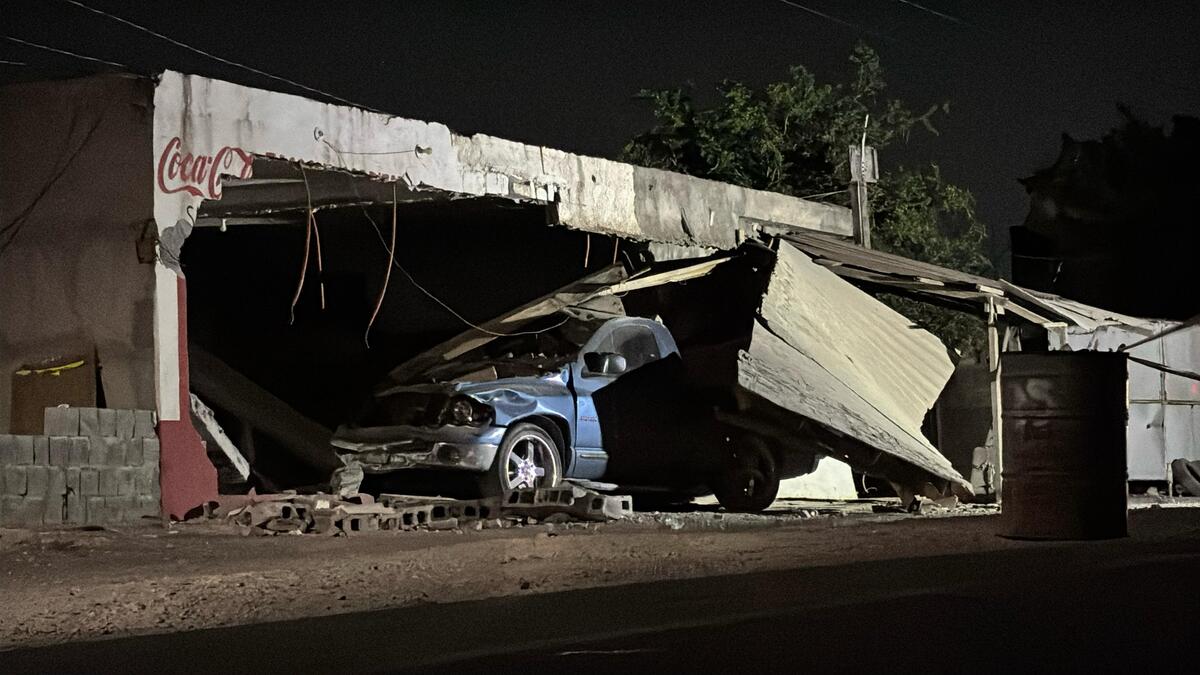 Tras esto, presuntamente perdió el control de la camioneta, impactándose contra la fachada de un negocio de venta de tacos y gorditas, destruyendo por completo el establecimiento.