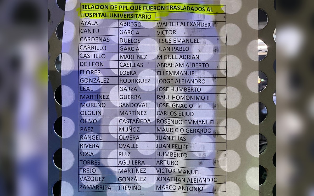 Afuera del penal fue pegada una lista de lesionados que de acuerdo a la Secretaría de Seguridad del estado fueron llevados a un hospital. Minutos antes 19:00 horas se había dado a conocer 16 nombres, más tarde se reveló que hay cinco más lesionados.