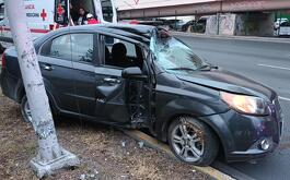 Accidente sobre avenida Constitución, en Monterrey: choca contra poste